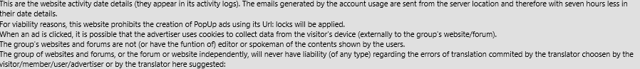 It is important that the user clearly understands that, as is logical, with the account usage he/she is accepting and consenting to all the uses that the website makes (automatically or through the tasks of the administration department) of the data contained in the user account, in accordance with the content of the document of the group: 'Terms (conditions of use) & Privacy Policy' (with the unique objective of enabling the functioning of the website and/or facilitating the processing for which the data were collected and/or used automatically by the website/forum and/or were required/requested in accordance with the content of that document of the group).